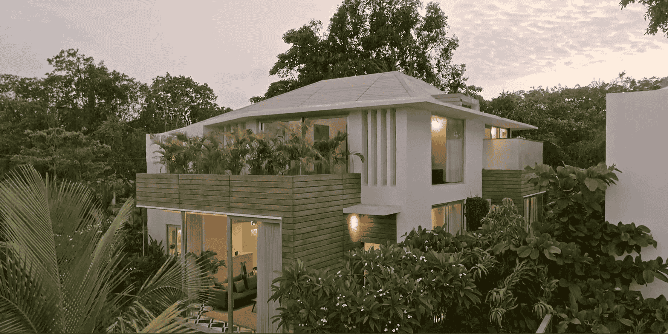 The wood cladded villa that you encounter will further this sense of being transported to another realm. And once you are inside, the incredible, twelve feet glass windows, which allow for an amazing interplay of light and shadow, will heighten this sense of being part of another world.